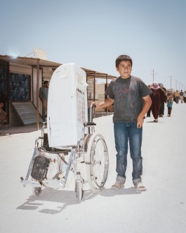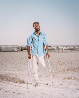 "I've been here in the Za'atari camp for three months. Back in Syria I was fighting with the rebels. I came because I was injured and lost my leg after being hit by Assad’s forces. My house was totally destroyed with the rest of my neighborhood. Men, women, children, old people and animals were all destroyed without mercy. My brother was killed as well. We buried him and came here.